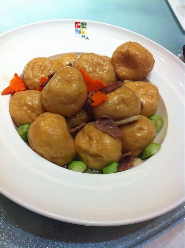 【特色鱼面筋】:名字很普通,但是鱼面筋端上来,个头这么大,一个个鱼泡泡似的,一口咬下去,首先一包气扑面而来很香,再来咬下去,口感非常的又弹性,味道很清香而且很鲜,很干净,不会油腻的感觉!