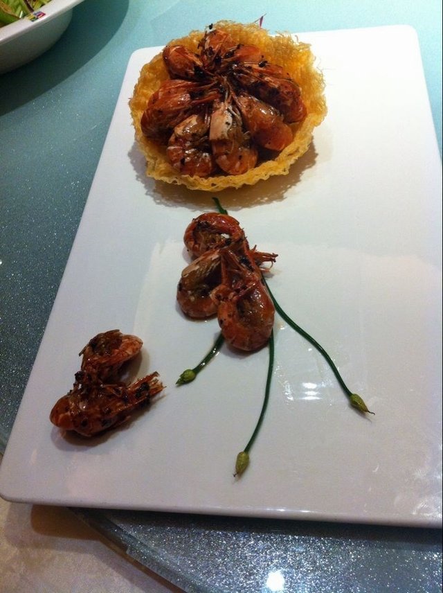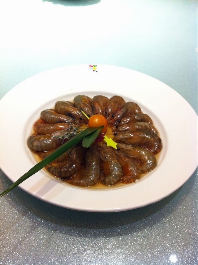 【油爆虾】:油爆虾的摆盘还是蛮精致的啦,虾肉的个头也是蛮大的,入口外脆,虾肉质感富有弹性,味道鲜美甜丝丝的,烧制的很入味可口!