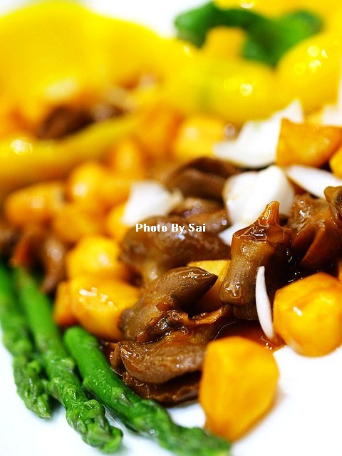 鲍汁板栗蜗牛,蜗牛我没吃,呵呵,板栗和芦笋倒是很好吃,因为拌着鲍汁,鲜香浓稠,另外还有地里,就是跟栗子区别不开,要咬到嘴巴里才吃得出;