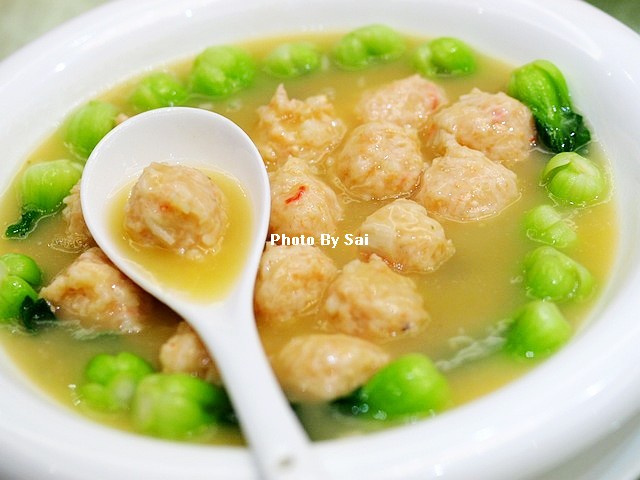 米汤浸蟹子龙虾球,龙虾球Q弹,每一口咀嚼都吃到蟹子在口中爆裂,高汤做的,边上配的青菜都很好吃,推荐;