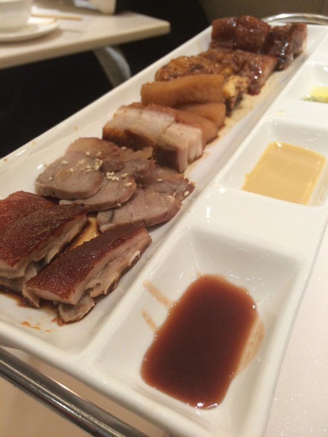 烧味六宝拼盘,最爱里面的脆皮乳猪,那小皮特别的脆,肉肥而不腻,一口咬下特别的香,蘸着点儿小料味道更是赞,其它的印象都不深刻,主要是乳猪太好吃