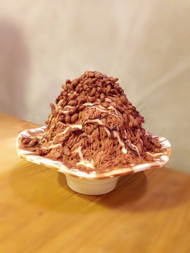 冰的表面有巧克力酱和炼乳,重点是那些巧克力味道的脆颗颗,很香。为这份冰增添色不少。