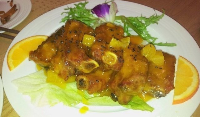 大块的肋排是我和富太喜欢的排骨~食材非常不错,排骨炸过后外脆里嫩,非常新鲜!橙子酱有些酸,当然考拉本身就很怕酸~不过里面的橙粒一点也不算,挺好吃的~点完后看到他们家推荐的是椒盐排骨,下次再试!