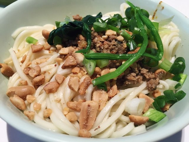 干绍面,小碗8米。看图片还以为是坑爹的货,这么干巴巴白乎乎的一碗面谁会爱吃,拌开之后才发现另有乾坤,酱料原来都在碗底。有点热干面的感觉,只是酱汁味道偏麻辣一点,面干干的特别绵软,配着酱汁吃起来有滋有味。