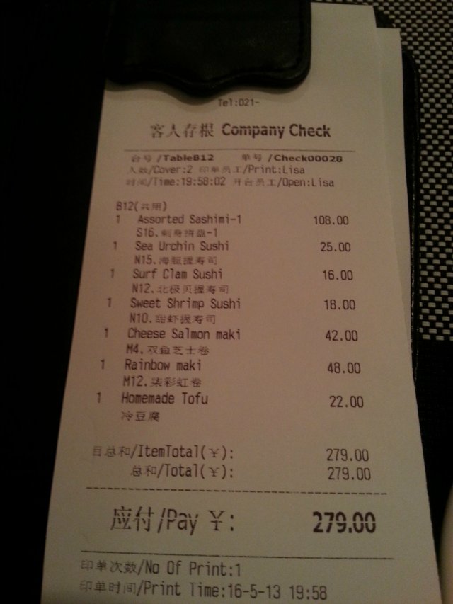 最后两个人一共吃掉279元,感觉他们家还是偏贵的呢,下次有团购了再来吃,哈哈~