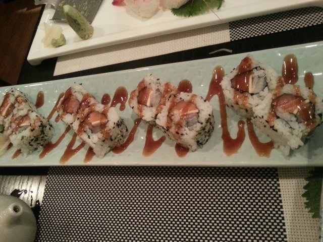 这个也是他们家的特色寿司,受死里面不仅有金枪鱼,北极贝,三文鱼,甜虾还有牛油果,融合在一起真的很好吃,一口一个,但是唯一一点不是最满意的是醋饭裹得不够紧,一沾醋就容易散架呢~
