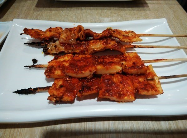 千叶豆腐,1.5元/串,小小的豆腐块串在一起,味道不错,只是没有千页豆腐本身那种韧韧的口感~