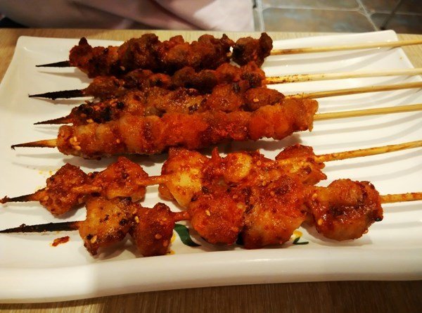 小菜我喜欢拌豆腐丝,微辣,更多的是甜,很合我的口味,呵呵~他家烤串的种类也不少~