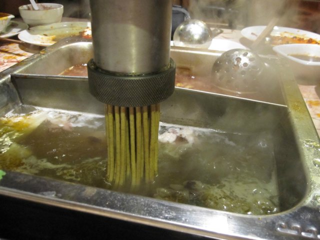 火锅的底料都是店家亲自熬制的。每天熬制一大锅。都能卖完了。这个里面就是师傅在熬制火锅底料。绝对的绿色啊。