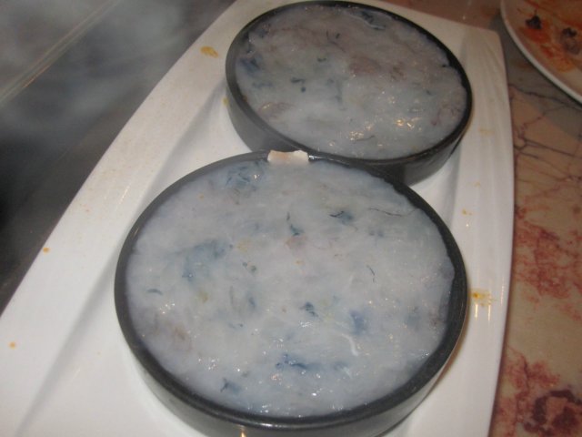 鲜虾滑 店家的不是用卷的,而是用一个碗装着的。吃的时候用勺子挖出来放火锅里面煮。