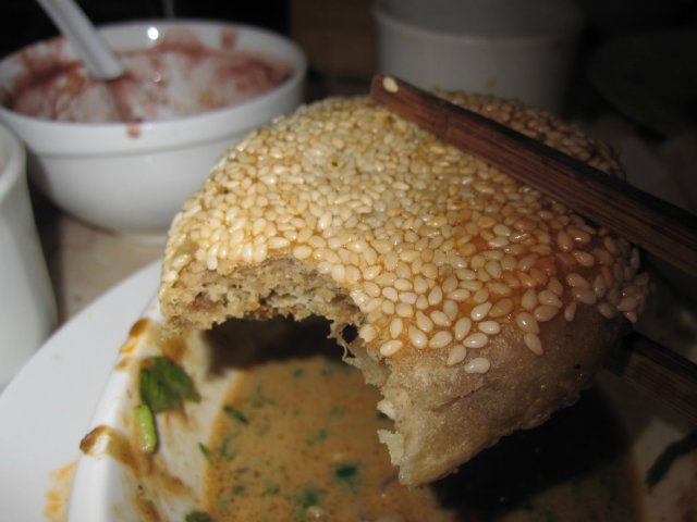 芝麻烧饼烧饼 店家的烧饼是自己做的。现做先吃。烧饼表面有密密的一层芝麻。刚出锅的很酥脆。外脆内软,香鲜可口 特别推荐