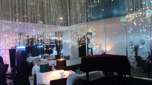 经过了解才知道,鱼旨寿司原来是鹿港小镇麾下的独立品牌。英文名为Yi Sushi,其就是店名“鱼旨”一词,由“鮨”拆分而来,日语写作“すし”,汉字可写成“寿司”也可以写作“鮨(yì)”。鱼旨寿司每开一家分店,生意都很好。这家位于滨北的分店是酒吧改造的,除了刺身台、酒水吧台,还有一个专门的DJ电台。店里分为上下两层,店内店外都有座位,松软的沙发,梦幻般的水晶幕帘灯,在这里用餐除了感到舒适还有一份优雅。