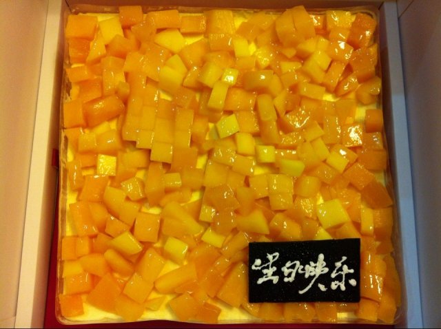 还记得当时团购的芒果慕斯是和底盘一样大的,现在这个蛋糕有底盘的二分之一大吗?