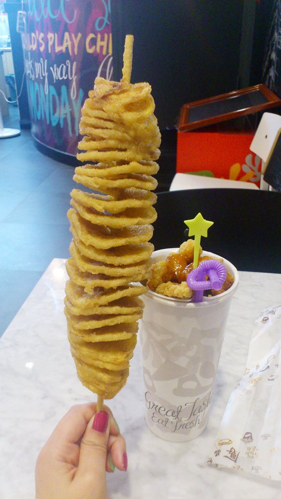 美味龙卷风 查查头等級42013-09-126 瀏覽 關注 看了下评价貌似普遍不高,我觉得很好吃啊,点了仁川龙卷风鸡汁味和Q杯乐甜辣酱 先说下仁川龙卷风,鸡汁味很鲜美,薯片非常香脆,一咬就破,上面还有粉粉的感觉,入口即化,好吃呢 Q杯乐的设计蛮人性化的,上面的小盒子放鸡块和酱料,多出一个小孔可以插个吸管喝可乐,以前一直觉得单吃鸡块蛮干的,能配饮料很周到的感觉,鸡块本身口味一般,比较淡,建议可以多加点调料~~ 虹口龙之梦这家是新开的,服务员蛮热情的,以后路过还会去哦以上食評乃用戶個人意見 , 並不代表OpenRice之觀點。讚好分享美味龙卷风 比比客 https://s.openrice.com/KtbT100s3u700檢舉 張貼 評分4味道4環境4服務4衛生4抵食