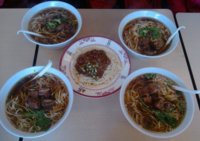 牛肉面18一份,炸酱面16一份,如果价格便宜的话,或许还会点上几个小菜,既然这样就算了吧。