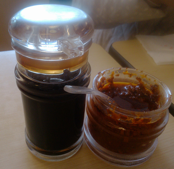 这家还有各种调料,比如醋和辣椒油,平时不吃辣椒的,看到这家的辣椒油做得不错,放了些,不是特别辣,吃着味道还不错。