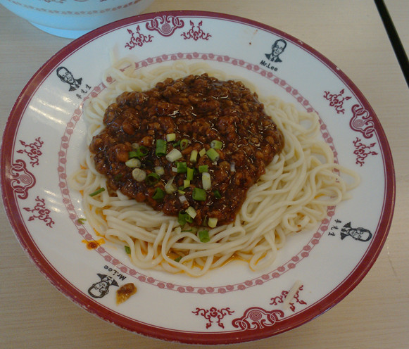 这家的炸酱面有些微辣,面条比起牛肉面来比较软,里面都是肉沫,不过量有些少,小女生吃是足够了。