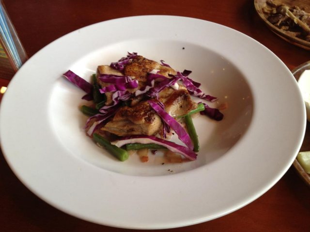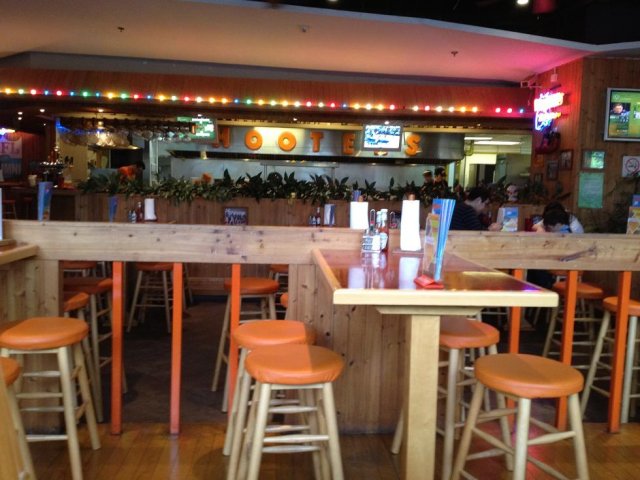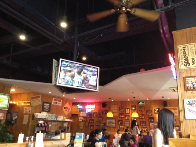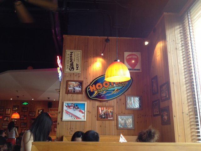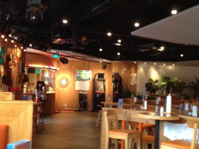 网上中了一个“香煎鸡腿"88元,等于送了一个菜。那我和朋友2人就去了传说中的美女云集的美国餐厅。我们到了太早了,坐下先浏览菜单,看到鸡翅不错,点了10个,59元/盘(如果周三晚上去就好了,2.99元/个鸡翅,很便宜的。)饮料还是不便宜,一杯可乐18元。还好我们聊天,吃得比较慢。终于,在下午1点的时候见识到了showtime,Tip-Top,动感十足,在这里打工,还需要会跳舞。我还拍的视频,哈哈