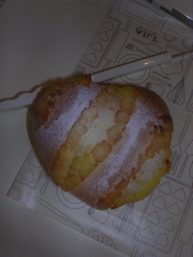 【爱的礼物】和其他两种叫不上名字的。都是里面有馅的~the tree的三张pizza丝毫不能阻止我们的战斗力,抑或是因为有了它们我们才只点了三张而已。。。味道还挺不错的,毕竟里面有馅就胜过干巴巴的死嚼的面包,其他两种里面心型的那个面包里面还带椰蓉,那个方形蛋皮包裹的也还不错。朋友们普遍反映不错,所以至少我的选择没给我丢人,哈哈。爱的礼物也是蛋皮包裹的,但是ga里面的