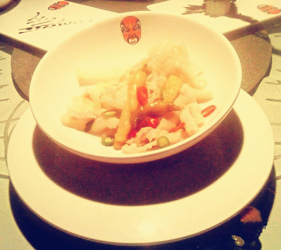 同事点了川菜代表的泡椒凤爪,挺地道的,泡椒的香气既刺激又辣爽,过瘾,凤爪处理得很干净,指甲都剪掉了,不是很肥,不过凤爪的口感非常Q弹,超开胃。;