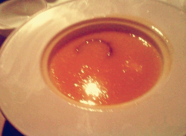 同事还点了一道有辽参扇贝的汤,汤汁比较稠,味道非常鲜美,也真吃得到辽参和扇贝,很不错。