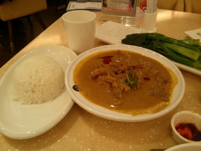 咖喱牛腩很小一盘,里面只有五六块牛肉和一两块土豆,这个量太小了,但是咖喱的味道和香港同款,下饭吃非常好,