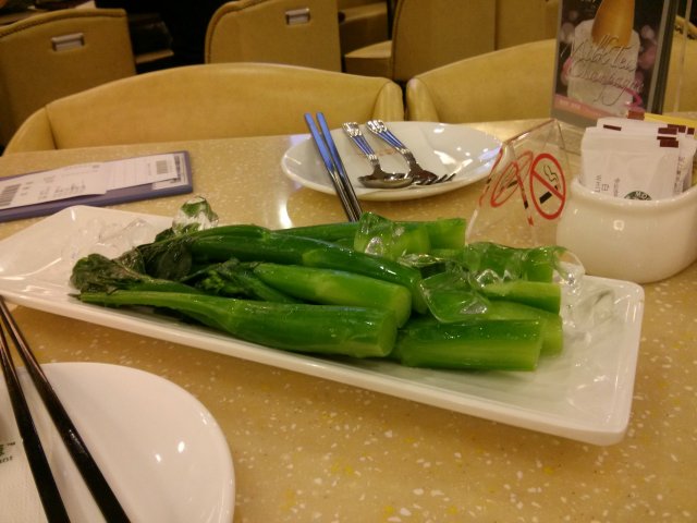 冰镇芥兰,芥兰个头很粗,上海不太看到,应该是从广东那边运过来的吧,蔬菜非常新鲜,咬在嘴里又脆又香,另外蘸上芥末和酱油,那个味道实属上品。