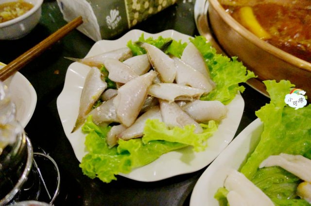 耗儿鱼。。偶非常喜欢的另一个火锅涮菜。。这个鱼肉扎实。。放在辣汤里煮很久也不会很辣。。只有一根主刺。。怕被鱼刺扎的朋友也可以吃。。偶更喜欢涮完这个打包回去放一晚。。第二天再吃鱼肉更加入味好吃。