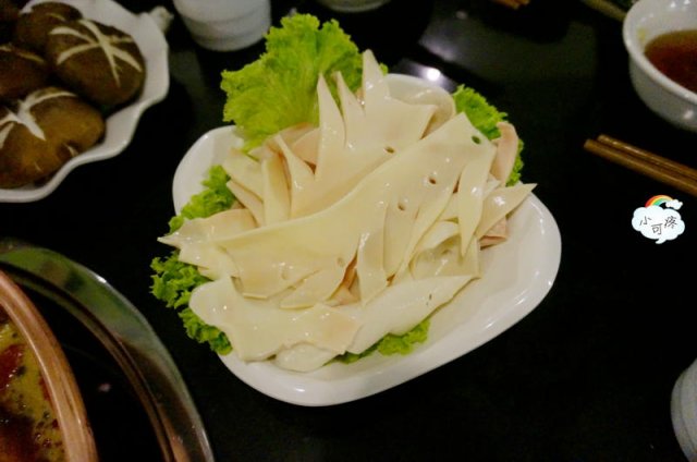 锵锵。。来了一个新鲜涮品天梯。。估计很多人都不知道这个是什么吧。。偶开始还误认为是猪的牙床。。其实是猪的口腔上堂。。看着有点渗人吧。。哈哈。。据说煮出来韧韧的味道还不错哦。