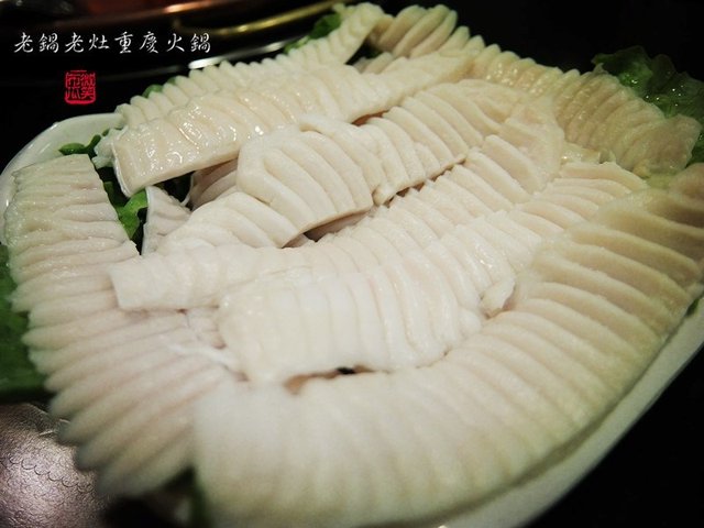 【鲜猪天梯】前所未闻的东西在这算是吃到了,形如其名,一层层的很均匀。这个涮的时间要长一些,至少15分钟。涮熟成卷,口感韧中带脆。