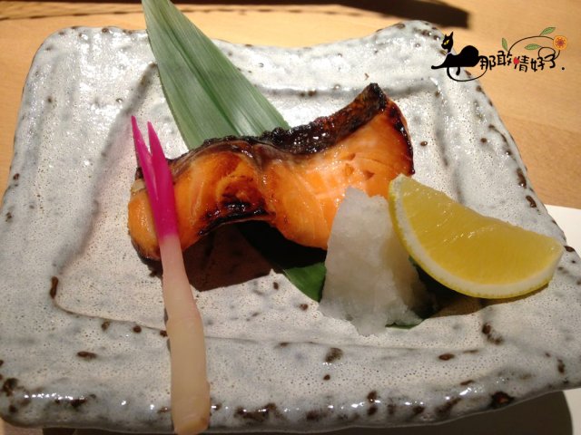 烤三文鱼的味道很好,上边有一层蜂蜜似的甜,稍微皮有点儿韧性。