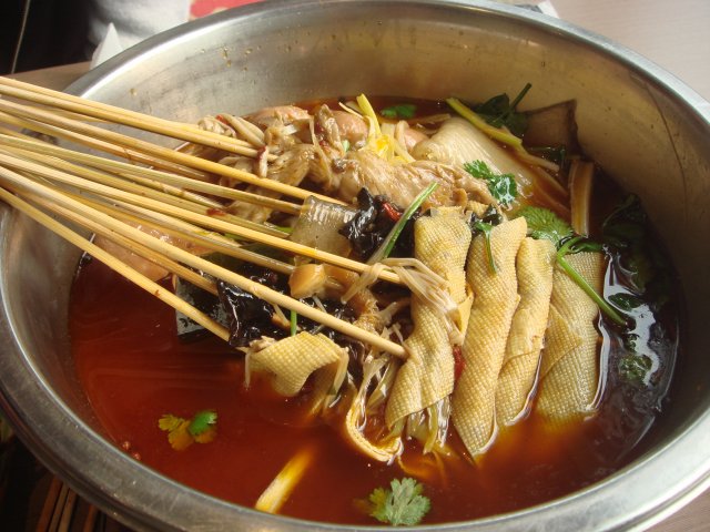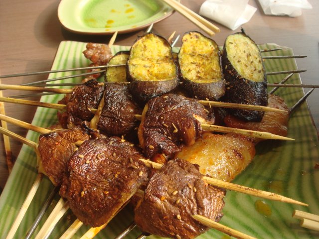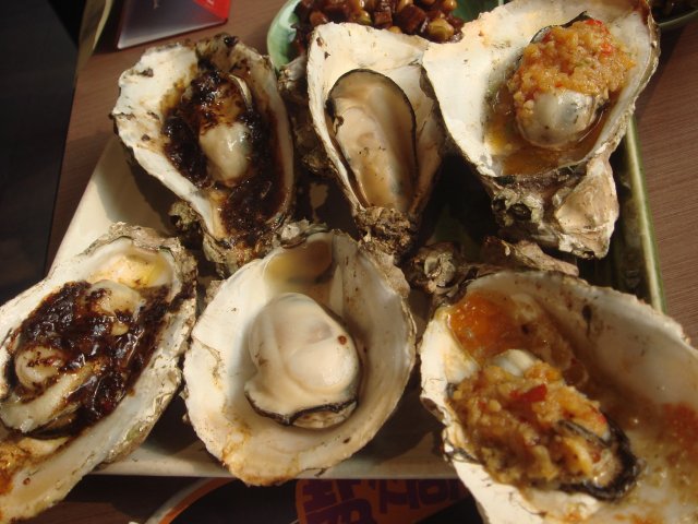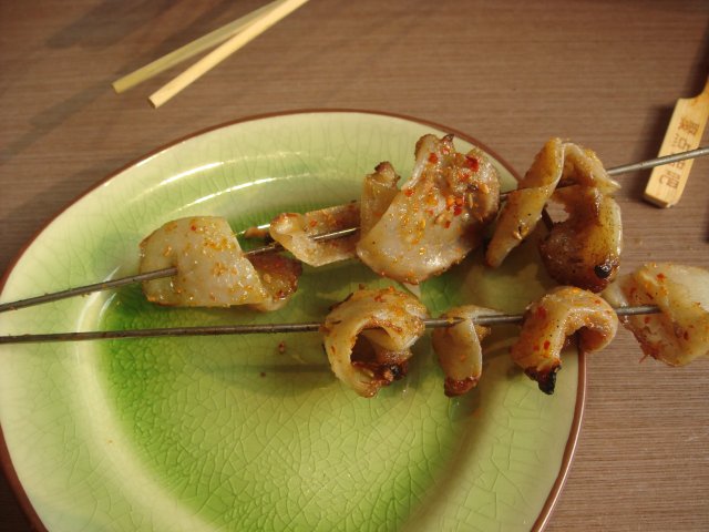 又想吃串了,所以来到了聚点串吧。有两层,ms二层是专门用于自己烤串的,一般晚上选择自己烤的人多,所以白天没有人,大家都在一层。专门来吃串的,所以要了很多串。有麻辣和香辣鸡翅,烤的还行,就是不够辣。有香辣猪排,四块小排骨,还是不够辣。聚点小串,这个是鸡肉串,颇有点骨肉相连里面的肉的感觉。骨肉相连,味道不错。羊肉串,烤的真好吃,就是再辣些就好了。烤茄子,深得老婆的喜爱。烤香菇,我很喜欢。要了半打的碳烤生蚝,22元,so的一下就吃完了,不过瘾。要了涮锅,类似于麻辣烫,单点小串放在里面煮,点20串即可免费送锅。我们要了丸子、牛肉、毛肚、海带、金针菇等等,每串在2元左右,金针菇是按份上的,6元。可惜涮锅可能没有煮到火候,没有什么味道,不辣不香不咸,只有油的味道。店长说是因为没有煮到火候,估计是我们来早了。现在吃100可以抵40,价格还是很优惠的。不过,店里不能刷卡,而且没有免费餐具,这点希望以后可以改进。还有就是烤串已经设置辣等级,以备顾客选择。涮锅希望下次去能吃到煮到火候的。总体来说不错。内大街吃饭的地方可真多,好地方。