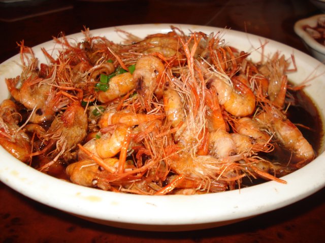 酱油虾,这是他们家最有名的一道菜了,不过真的吃到了,我也觉得很普通啊。河虾事先略炸一下,再放酱油烹制,没有传说中的那么好吃嘛。