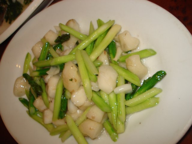 荸荠炒芦笋,荸荠甜甜脆脆的,芦笋的茎都刨掉了,还是老嫩呃,很清爽绿色的一道蔬菜!