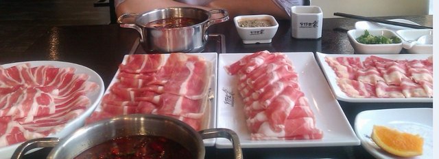 看我们点的菜,满桌都是肉,草原小肥羊、一品肥牛、美国肥牛、雪花肥牛,完全就是为了吃肉而去的,他家既可以吃自助也可以吃点菜,自助的菜品稍微少一些,特别是荤菜类,但基本的都有。肥牛肉都是现切的,切得很薄,入锅几秒就可以烫熟,肥而不腻,吃起来很享受。这家调料是自助的如果吃不惯北方的麻酱可以打一个香油的火锅调料,每人一锅,独立卫生,水果也是自助,但种类和品相都不好。环境和服务也都不错,上菜快,卫生也做得不错。
