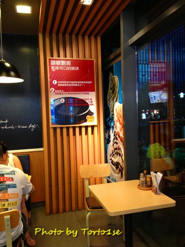 这家店一开始是在正大看到的,因为闻到很重的胡椒味而留下了印象!这次在某人家附近看到后果断进去搓一顿~一进门又是重重的胡椒香味,不刺鼻,个人很喜欢闻~看了看这里的环境,有点半自助快餐的感觉。进门就是一个点餐区,可以根据自己的喜好进行点餐。点完餐后会发一个号码牌,选定座位后就等店员把铁盘端上桌啦~
