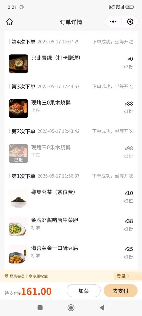 除了參考大家的食評之外,也看看附近食客選什麼菜式.原來此餐廳主打食燒鵝, 我們2人也點了一份$88上庄(原本想食下庄$98可惜賣完了~我們大約12:45左右下單). 不過,上庄都可以有幾件肉肉不算太多骨😅皮脆香口又唔油, 鵝肉多汁,味道可以不會太咸. 還有奉上4小柸山楂汁,應該是化解燒鵝的肥膩.不過,山楂汁偏甜.我與朋友也覺得麻麻地.所以飲了少少. 反而,每檯的茶比較清香,喜歡此茶香.