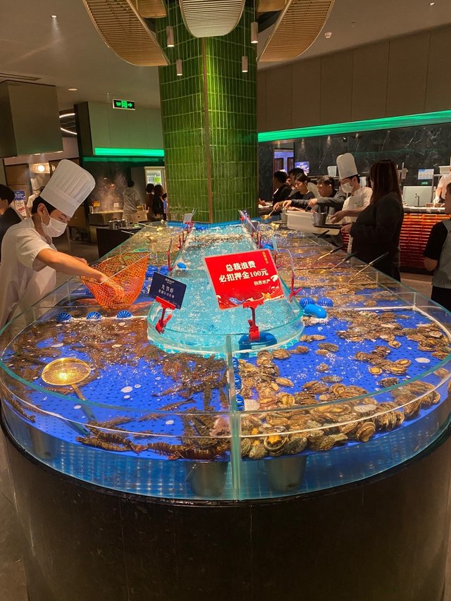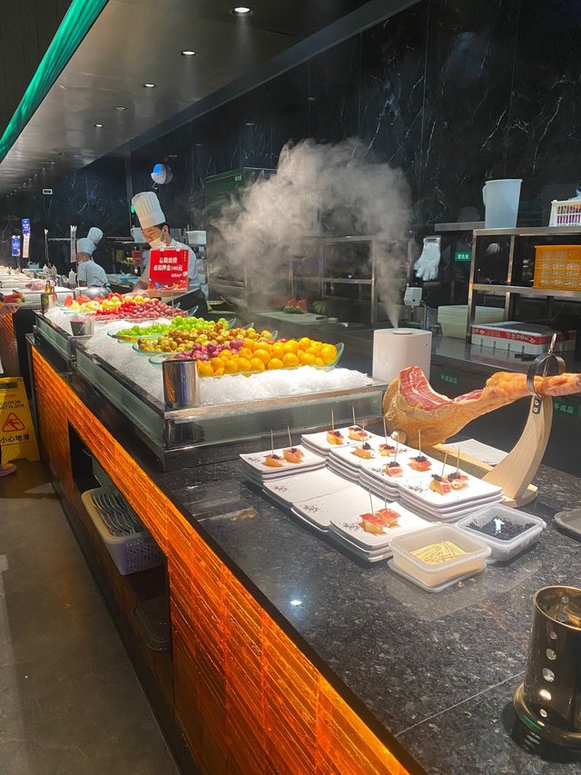 熱食區嘅鐵板菜品都幾有水准,比如鐵板牛仔骨,醬汁入味,肉質軟嫩,火候控制得好好。不過都有兩個小遺憾:第一,只有一個大蒸籠,冇得揀打邊爐,相比其他海鮮自助,進食形式太單一,想換下口味都唔得;第二,食物同飲品款式唔算豐富,尤其就餐高峰時段,飲品經常斷供,補貨唔及時,想飲杯凍飲都要等好耐。