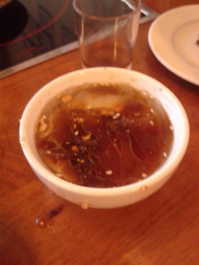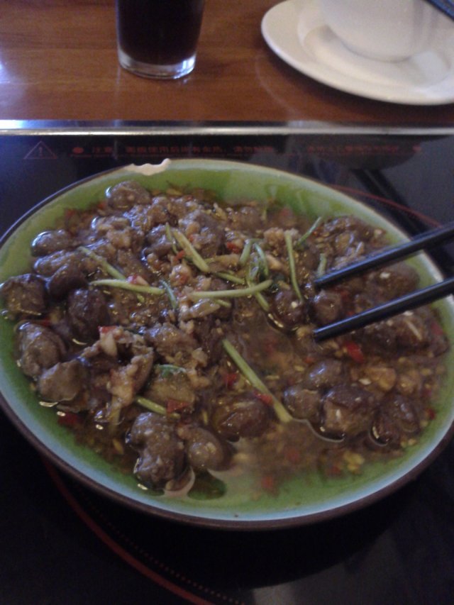 还是不错,上座就马上把酸梅汤啊冰粉和胡豆端上来了。胡豆基本泡在油里面,味道还是将就吃,不过胡豆非常软就是了~酸梅汤还可以,冰粉太甜了肯定是加了白糖的因为吃起有蔗糖的甜味啊~