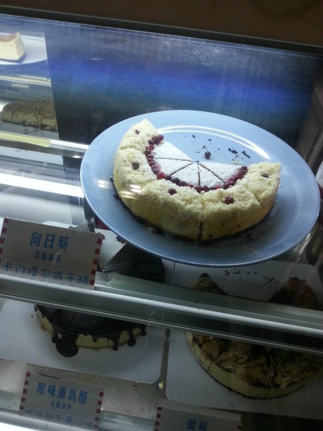 店面很小,里面人很多,由于我们去的时候接近饭点了,里面坐了好多人,而且丝毫没有要走的迹象,于是我们先看了一下展示台里面的蛋糕品种最终决定打包带走品尝。