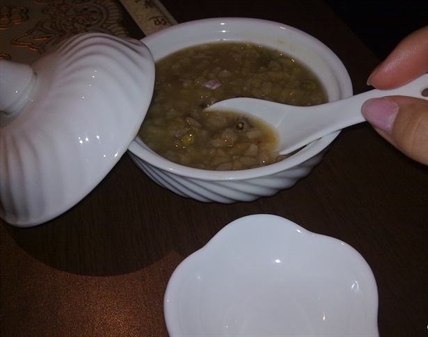 花前悦膳的所有都是以花为主题的,这里布置的温馨舒适,到处可以看到各种花的装饰,而且各种菜肴都与花有密不可分的关系,或以花为主料,或以花为装饰,连盛菜的碗碟都是如此的精致美观。桃花粥,8元一碗,是用桃花花瓣熬制的,散发着淡淡的桃花的香气,清清爽爽有点点苦,可以消辣解腻。还有浓香锅,是用玫瑰花瓣烹制的,料很多,菜里特别添加了巴西菠萝,里面的蛋衣玫瑰把玫瑰花瓣挂糊炸酥,巴西菠萝的酸味也正好去了油腻感。冰火沸腾虾,78元,菜肴和容器完美结合,看着就很有食欲,虾很嫩很好吃。用了薄荷叶和柠檬做搭配,增加了清新的口感。