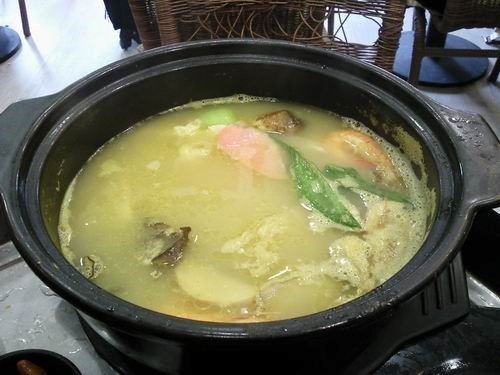 这一大锅,捞了一下,东西还真不少,介绍里该有的基本还真都有了,好几种菌类、两只大虾、两个鹌鹑蛋、北极贝、火腿等等,最后还捞到了一小块海参,呵呵,果然有料啊。味道嘛,还可以,汤挺好喝的~~~