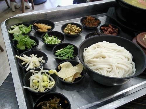 等了一会,我的米线终于来了,不过不是一份份摆出来的,好多已经下到锅里了~~~