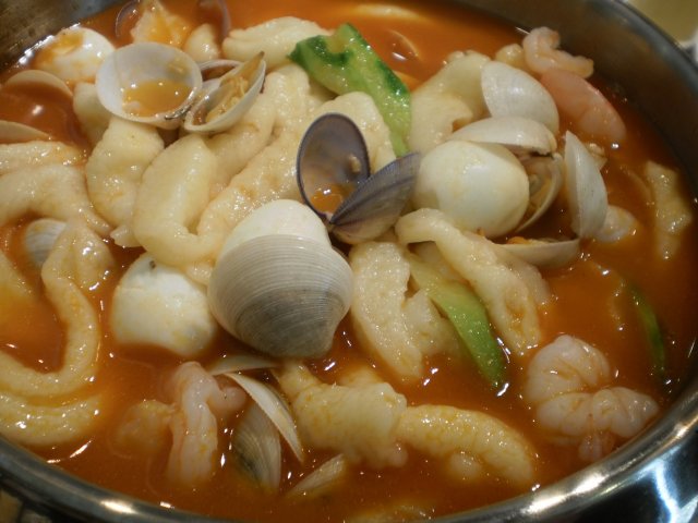 《特色酸汤海鲜面疙瘩》里面海鲜蛮多的,面疙瘩做了很细腻有嚼劲的。带点爽口的酸味,吃一口汤再吃一口面疙瘩,顿觉鲜得掉眉毛。
