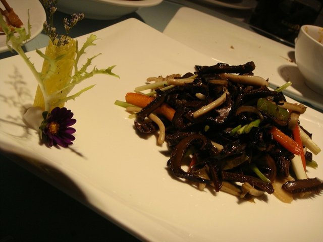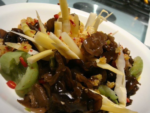 虎掌菌炒鲍鱿丝 :其实本人小时候吃菌吃多了,所以长大了不是很爱吃这个,所以对此没有过多的研究,不过我觉得这个菌的味道还不错啊,营养丰富