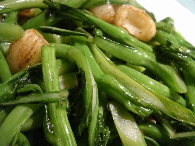 乡下生炒小菜心:也是大家推荐的菜肴之一,很少有店能把蔬菜炒的如此好吃,里面配了煸炒的大蒜和切成小丁的肥肉,不过肉很鲜美一点都不腻,大家还一直埋怨厨师放少了肉,O(∩_∩)O哈哈~厨师回答的很是正确,如果放太多肉,大家主观视觉就会腻了