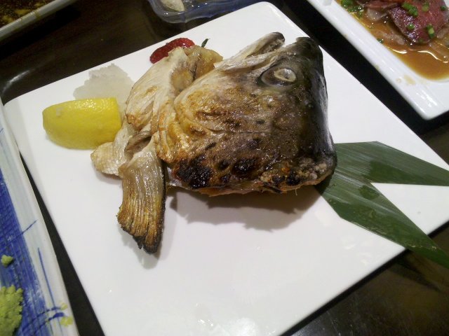 值得一提的是,第一次吃三文鱼头,上来的时候有被吓到,但是味道还是不错的,有种灼烤三文鱼的感觉,浇上一点柠檬汁更能提升鱼肉的鲜味,而且鱼头部分有块靠近腮的肉吃上去肥肥的嫩嫩的,可是又不会感觉有油腻,所以对于三文鱼头是另眼相看啊。