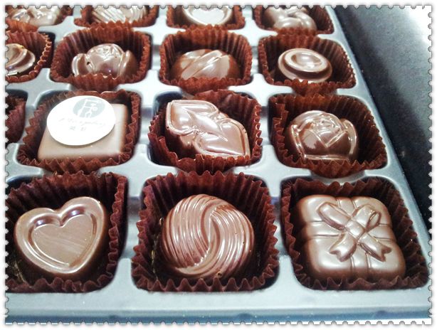 话说我是在周五的下午收到巧克力的,正在单位,于是招来各种垂涎,哈哈~~ 自己先抢了一块,摩卡味道的,微苦,但融化在口中却是甜甜的,口感细腻丝滑~~