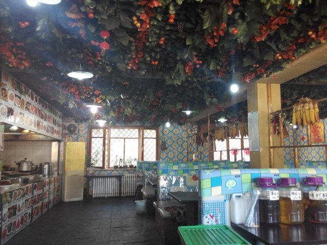 环境很东北,大花的装饰,典型东北墙上贴菜谱的装修,还有些主席海报,不过有点旧啊。