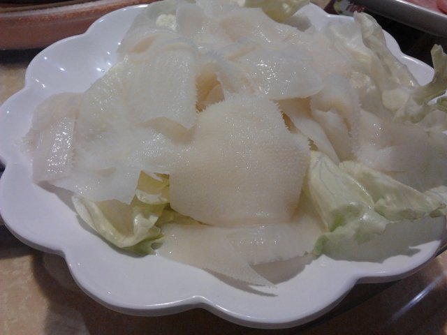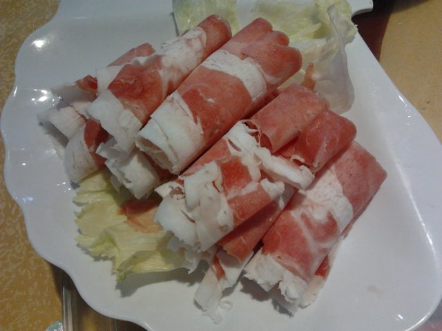 羊肉质量很差,肉片的颜色也不是很好,肉有点碎,煮熟味道一般,不是很喜欢。百叶是白色的,泡的有点过了,口感软烂,没什么嚼头。